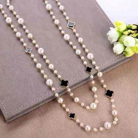 ファッションヨーロッパとアメリカクラシックボウロングネックレス女性パール二層セーターチェーンすべてマッチング