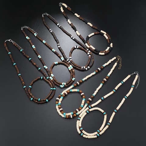 ボヘミアンスタイルのココナッツシェルターコイズストーンネックレスとブレスレットセット女性男性ギフト用