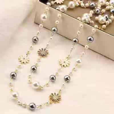 ヨーロッパとアメリカのファッションチェーン長いパラグラフ秋と冬の多層パール花びらセーターチェーン