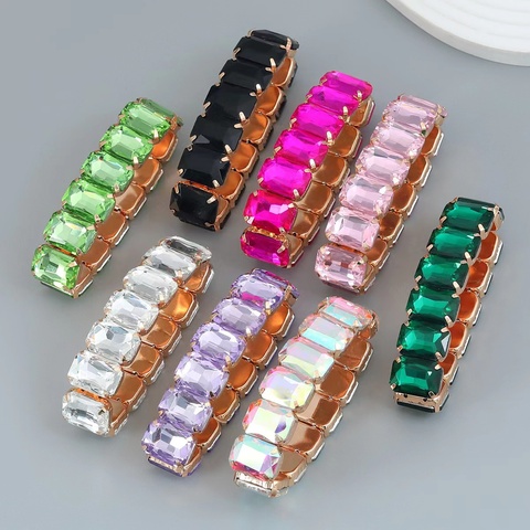 女性フルダイヤモンドエラスティックトレンドパンククリスタルジェムストーンゴールドブレスレットバングル