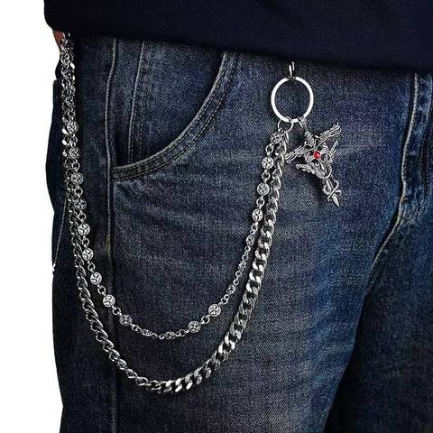 パンクバイクレトロリベットビッグゴーストヘッドパンツ男性用太いチェーンスカルベルトアクセサリーウエストチェーン